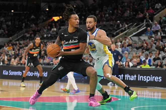 背靠背打马刺,库里触底反弹,进攻端虽然能得分,但防守端跟不上马刺的年轻后卫,完全就是防守黑洞。上半场他投篮12中6,三分6中1,砍下15分3篮板3助攻。