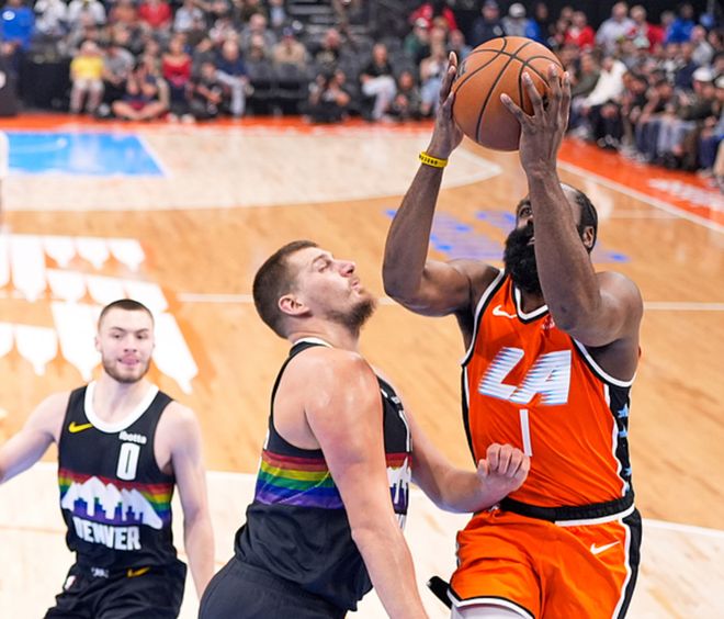 快船主场迎战掘金,掘金是背靠背作战,体力不如快船,快船方面伦纳德、比尔缺阵,首节比赛掘金占据上风4分领先,第二节快船三分很准反超比分,半场战罢快船领先5分,下半场比赛掘金完胜快船,最终掘金以14分优势拿下比赛。约基奇23中18(三分6中5)砍下55分12板6助,哈登15中6得到23分8板5助。